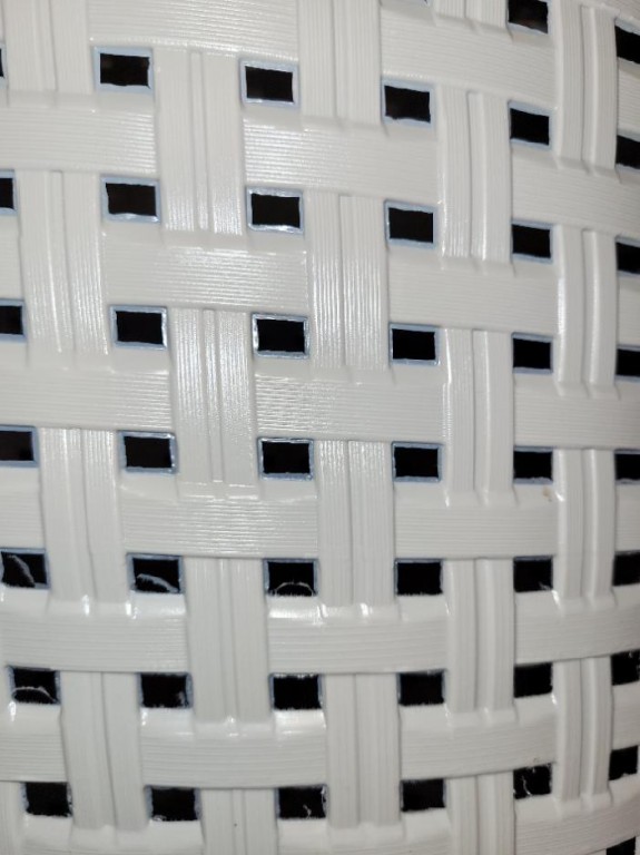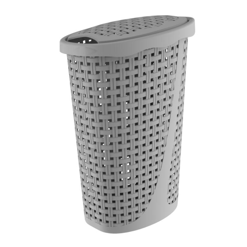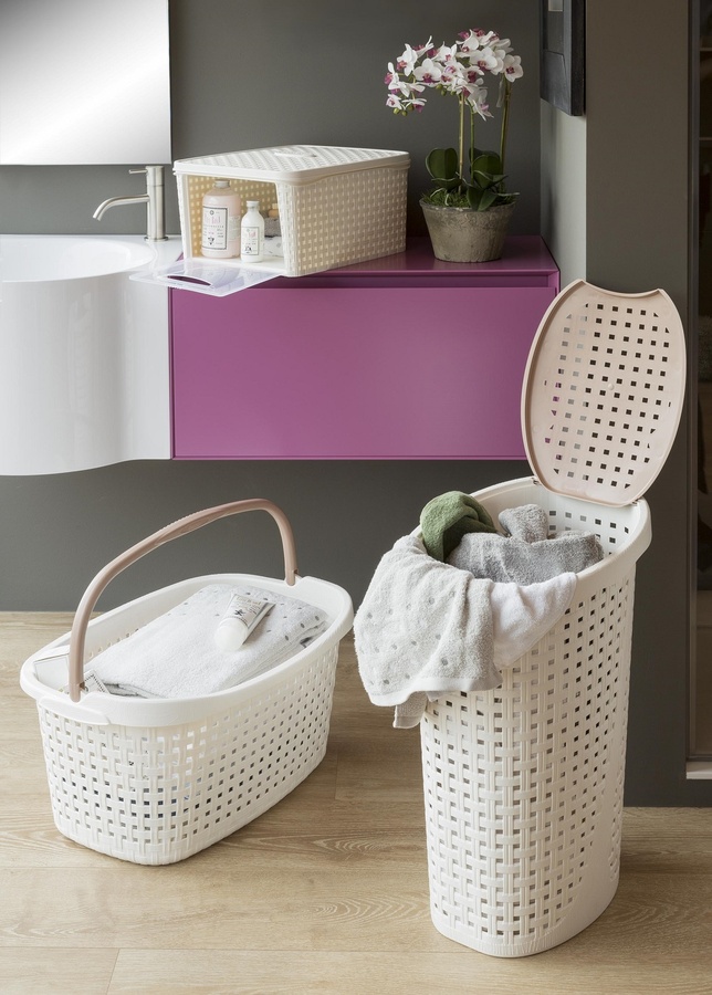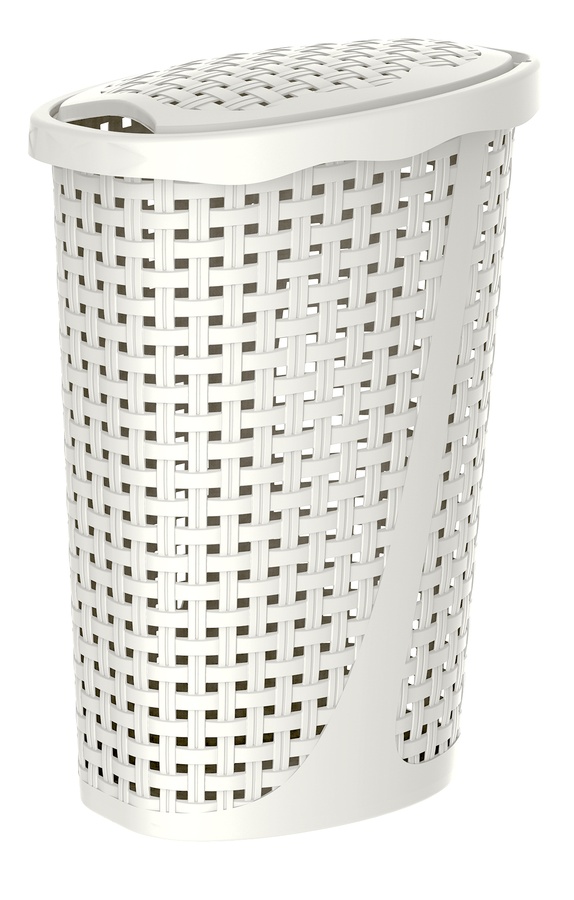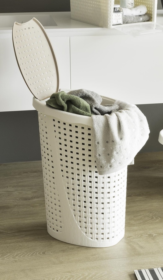 Praktický, prostorově úsporný koš na prádlo s pěkným designem, připomínajícím motiv protkané slámy.