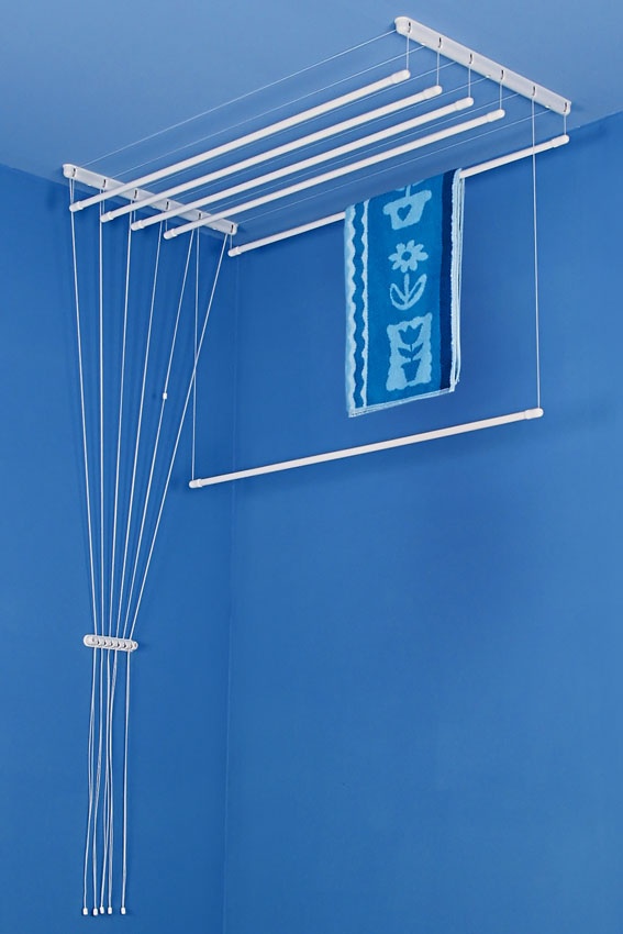 Stropní sušák na prádlo Ideal můžete umístit do koupelny s maximálním využitím prostoru. Prádlo zavěšené na stropní sušák nezavazí a rychleji schne díky přirozenému proudéní teplého vzduchu. Stropní sušák na prádlo Ideal lze použit v koupelně, na verandě nebo na balkóně. Každá z tyčí se ovládá samostatně. Sada je dodávána včetně kotvícího materiálu. Sušák je možné upevnit i na protilehlé stěny. Maximální zatížení jedné tyče cca 3 kg.