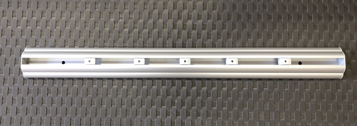Praktický posuvný sušák s pojezdnými jezdci. Délka hliníkové kontrukce je 80 cm, počet jezdců 8.