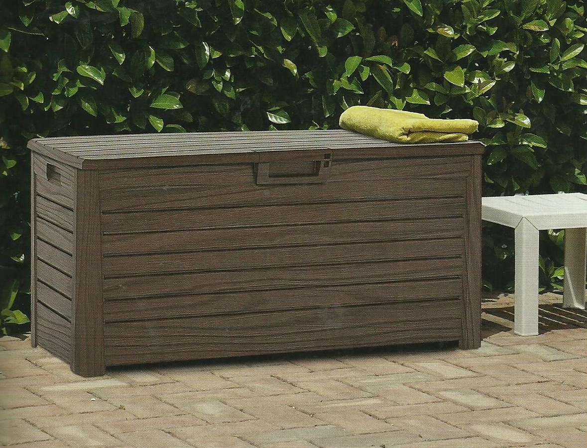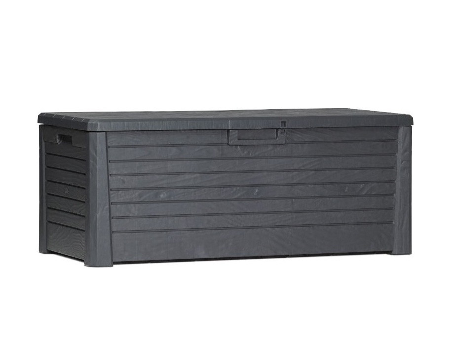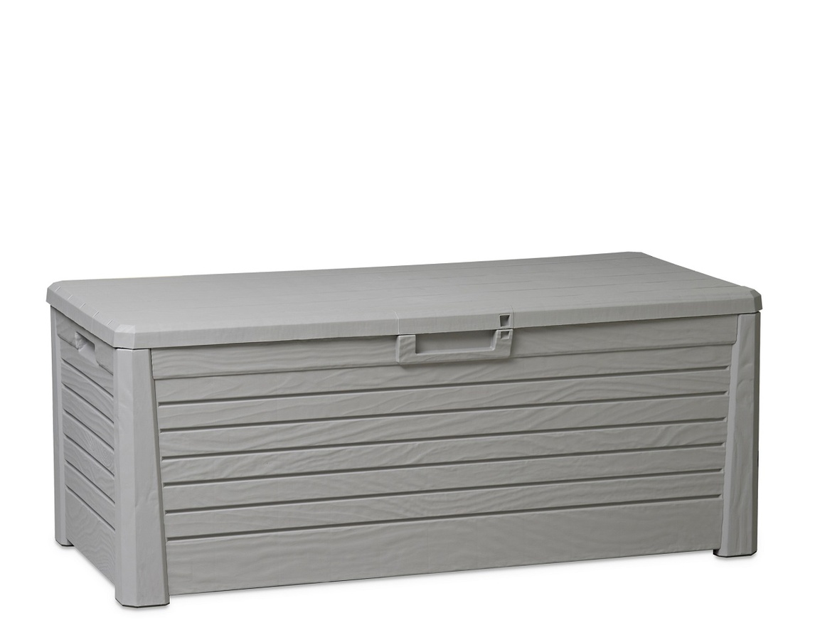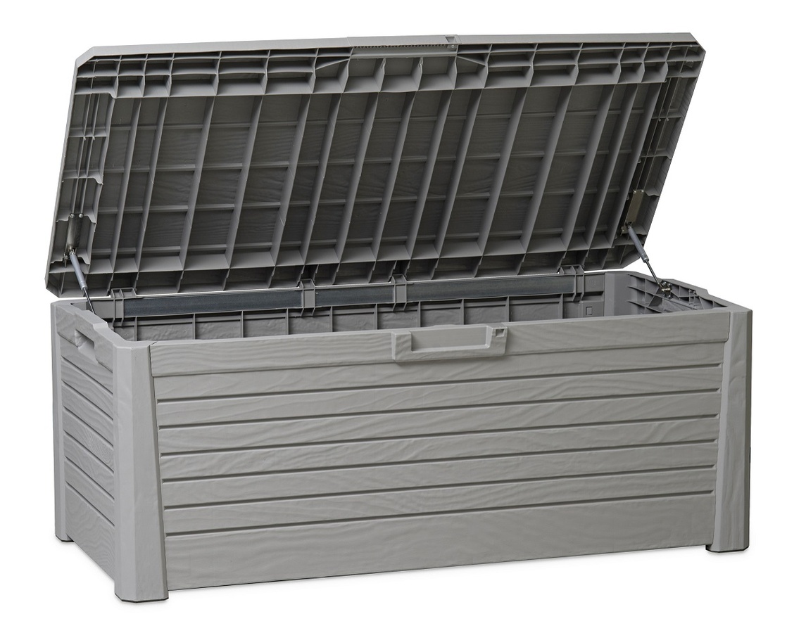 Zahradní úložný box, který je vhodný jak do vnitřních, tak venkovních prostor. Jednoduchá montáž. Na sestavení boxu je potřeba základní nářadí. Box obsahuje pneumatický píst pro asistované otevírání a zavírání. Možnost umístit zámek. Box je voděodolný, ne však vodotěsný. Neměl by se používat v zimním období, plast může v mrazech zkřehnout a tím se poškodit.