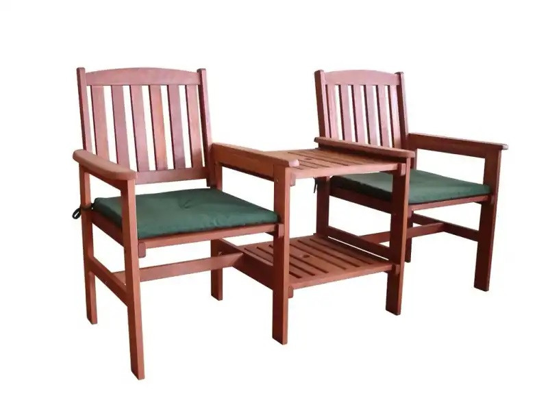 Praktická sestava dvou křesel se středovým stolkem a policí s otvorem pro slunečník pro příjemné posezení na terase, balkóně apod.