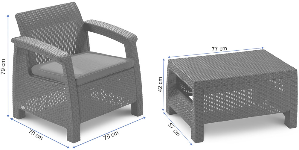 Rozměry křesel: šířka - 75 cm / hloubka - 70 cm / výška - 79 cm
