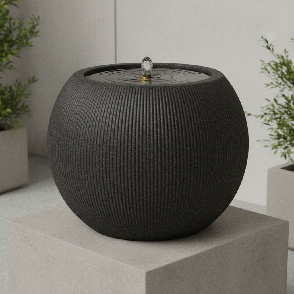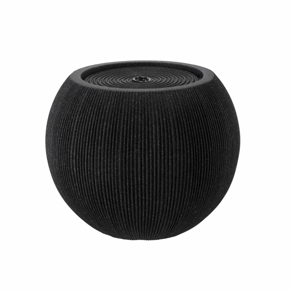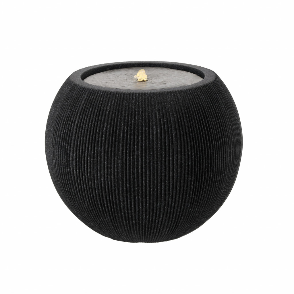 Plastová zahradní fontána s LED, 37 × 37 × 30 cm, kulatá, černá