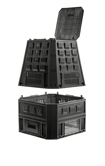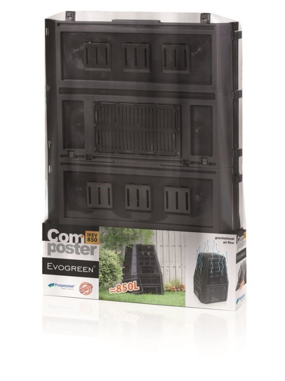 Jedinečný tvar umožňující cirkulaci vzduchu, který urychluje kompostování. Konstrukce kompostéru snižuje šíření zápachu, ergonomický tvar, moderní design, snadná montáž bez použití nářadí.