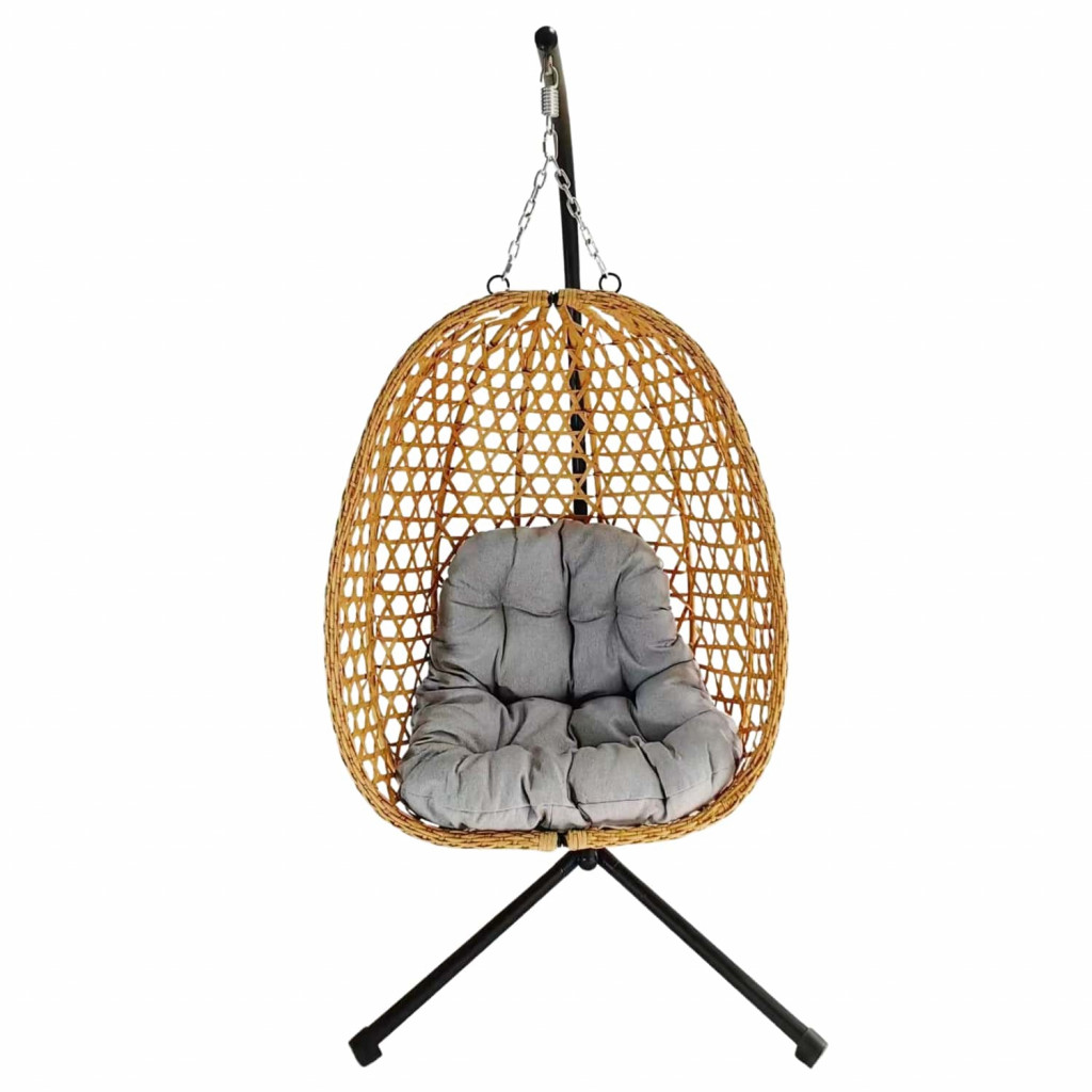 Skládací závěsné křeslo FARON – natural, šedý polštář, černý rám