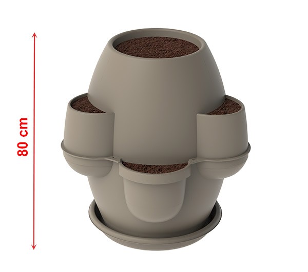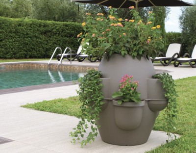 Zahradní květináč s podmiskou Oasi inspirovaný tvarem a rozměrem klasickou toskánskou nádobou. Květináč Oasi s podmiskou je pevný, elegantní a velmi stabilní, má velký středový otvor o pr. 33 cm, 6 okrajových kapes a speciální dno, které usnadňuje okysličení kořenů. Velký zahradní květináč se velmi jednoduše sestaví a plní. Velký zahradní květináč Oasi, vysoký 80cm, objem 200L s podmiskou osázený květinami bude ozdobou zahrad, teras i balkonů.