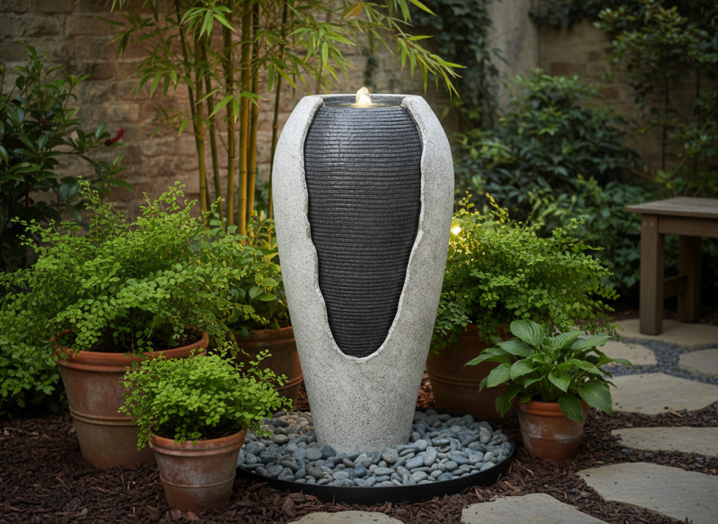 Zahradní fontána váza 36x38x76 cm s LED