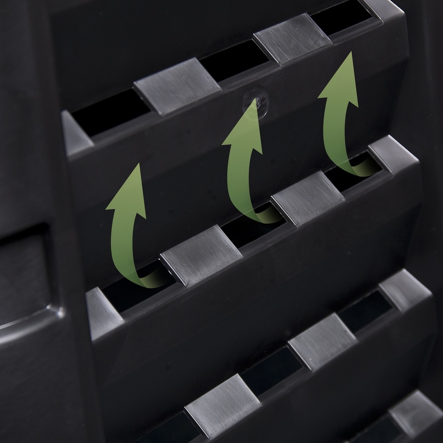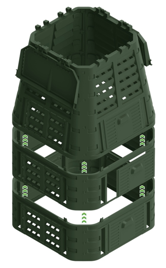 Jedinečný tvar umožňující cirkulaci vzduchu, který urychluje kompostování, konstrukce kompostéru snižuje šíření zápachu. Ergonomický tvar, moderní design, snadná montáž bez použití nářadí.