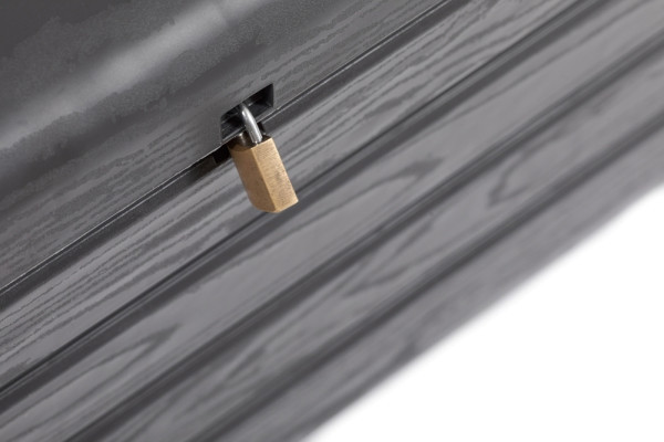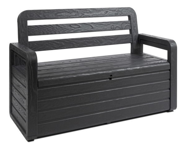 Zahradní plastová lavice s úložným prostorem vhodná pro venkovní použití. Lavice je vyrobena z plastu odolného UV záření s povrchem imitujícím povrch dřeva. Úložný prostor má objem 263 l se snadným otvíráním víka nad 90°, nosnost úložného prostoru je 35 kg. Robustní sedadlo zahradní lavice nabízí posezení pro 2 osoby, celková nosnost zahradní lavice s úložným prostorem je 320 kg. Úložný prostor zahradní lavice lze uzamknout visacím zámkem, který není součástí dodávky.